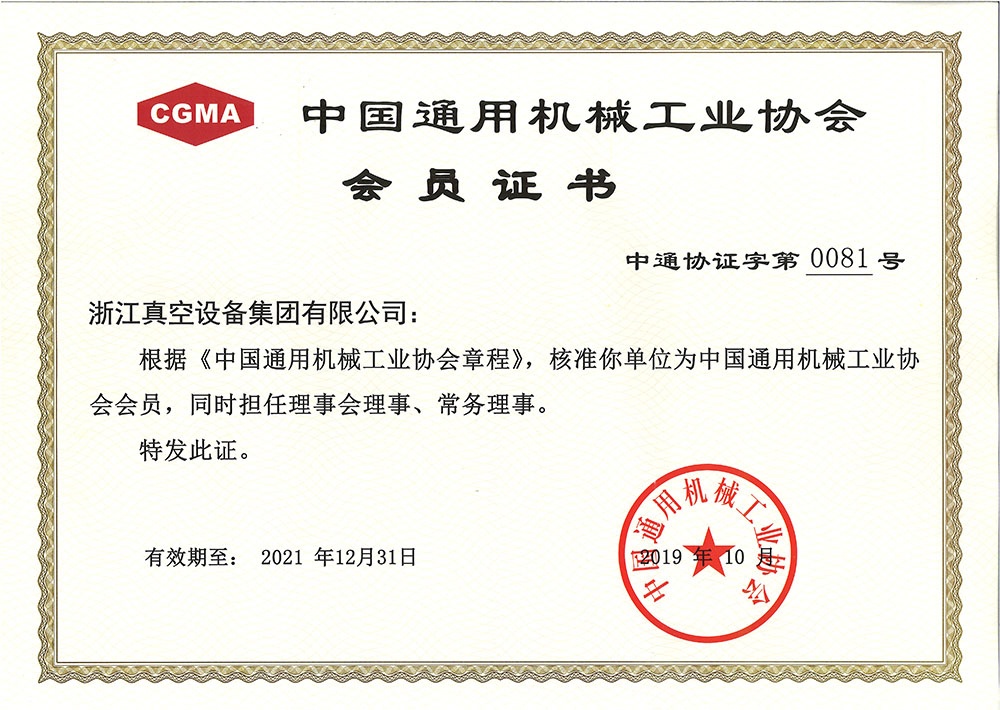 • 中國通用機(jī)械工業(yè)協(xié)會(huì)會(huì)員證書